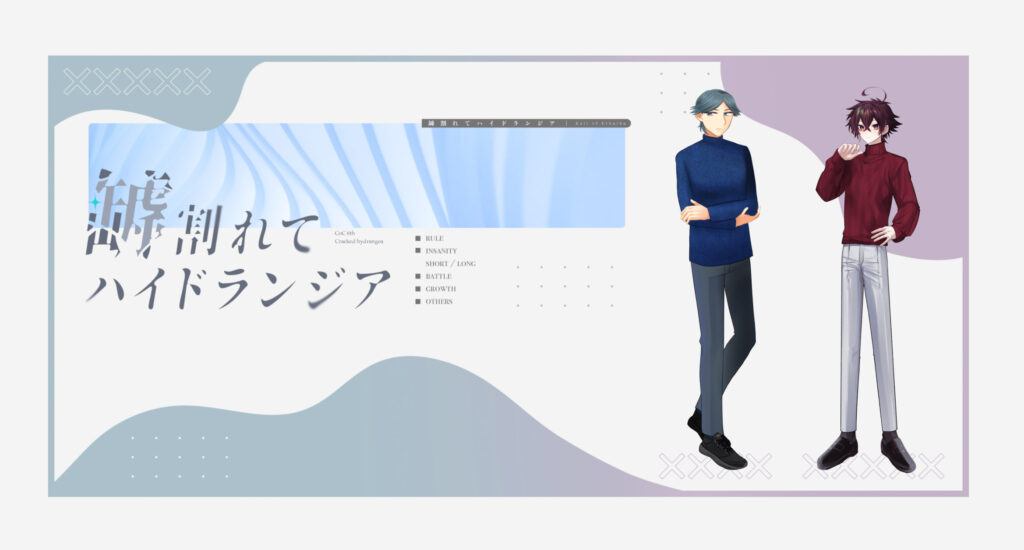 シュガーハイ・フロム・エンド【4】 ◆CoC6版2PL新規卓生還自作シ 秘刀湯煙銘【4陣】 ◆CoC6版2PL新規卓生還自作シ 秘刀湯煙銘【2陣】 ◆CoC6版2PL生還継続卓自作シ 秘刀湯煙銘【3陣】 ◆CoC6版2PLテスプ生還継続卓自作シ 凝視する虚像【4】 ◆CoC6版タイマン生還継続卓自作シ シュガーハイ・フロム・エンド【3】 ◆CoC6版2PLテスプロスト新規卓生還自作シ 凝視する虚像【3】 ◆CoC6版タイマンテスプ生還継続卓自作シ 凝視する虚像【2】 ◆CoC6版タイマンテスプ生還継続卓自作シ 凝視する虚像【1】 ◆CoC6版タイマンテスプ生還継続卓自作シ シュガーハイ・フロム・エンド【2】 ◆CoC6版2PLテスプ新規卓生還自作シ シュガーハイ・フロム・エンド【1】 ◆CoC6版タイマンテスプ新規卓生還自作シ レストラン脱出ゲーム ◆nRR継続卓自作シ 秘刀湯煙銘【1】 ◆CoC6版タイマンテスプ生還継続卓自作シ 透明白昼シクウィーラ ◆CoC6版タイマン生還継続卓自作シ ラブレブリミット! ◆CoC6版タイマンテスプ生還継続卓自作シ トリックホリックエトランジュ ◆CoC6版タイマン生還継続卓自作シ 暗に俗痕 ◆CoC6版タイマンテスプ生還継続卓自作シ 暗に俗痕 ◆CoC6版タイマンテスプ生還継続卓自作シ ステラブルーはいわくつき ◆CoC6版タイマン生還継続卓自作シ ステラブルーはいわくつき ◆CoC6版タイマン生還継続卓自作シ 罅割れてハイドランジア ◆CoC6版タイマン生還継続卓自作シ キューティーキャンディーカラー:Remake ◆CoC6版タイマンテスプ生還継続卓自作シ 際会の火 ◆CoC6版タイマンテスプ生還継続卓自作シ ハニームーン・ジュノ ◆エモクロアTRPGタイマンテスプ生還自作シ